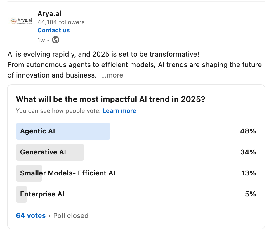 We conducted a poll to gauge what people are leaning towards, and 48% have chosen Agentic AI as the most impactful trend of 2025.
