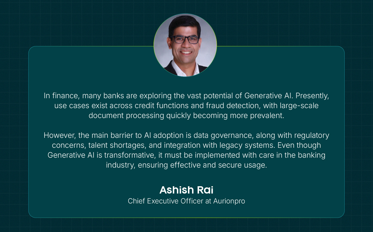 This time, we had the privilege of inviting Ashish Rai, the CEO of Aurionpro, to shed light on the potential of Generative AI in finance. Drawing from his extensive experience in driving innovation for the FinTech space, Mr. Rai shares his perspective on this groundbreaking technology.