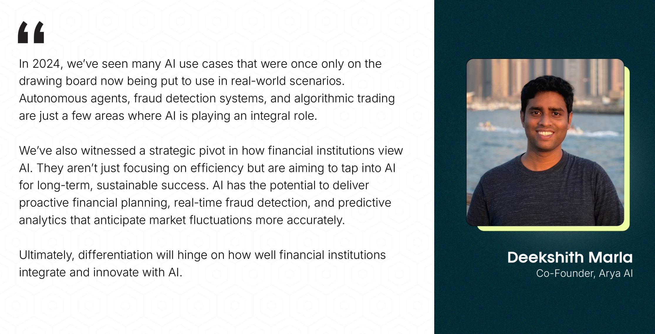 As we begin the year 2025, let’s look at how AI impacted the finance sector. The convergence of AI and finance is maturing and reaching a more strategic depth. The industry witnessed refinements across existing use cases, such as risk assessment and automation. It also streamlined internal operations and helped detect fraud.