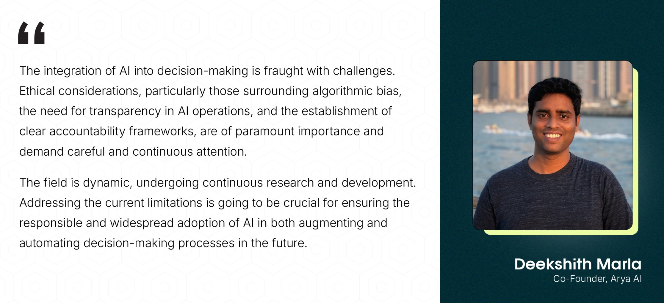Decision-making in business operations is complicated, as each decision impacts everything from operational productivity to company profitability. AI, carrying the mantle for decision-making, proposes a paradigm shift for how we work.
